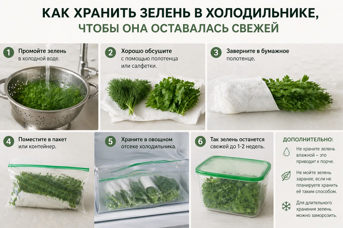 Увлечение здоровой пищей год от года только набирает обороты. Это не случайно — действительно, важно питаться правильно, чтобы ваше здоровье и силы могли сохраняться долго. Но, конечно, наша еда должна быть не только полезной, но и вкусной. Свежая зелень придаст вашим блюдам отличное сочетание вкуса, аромата и ценных свойств. У опытных хозяев зеленые растения присутствуют в салатах, супах и другой пище круглый год. Давайте поучимся у них, как правильно хранить свежую зелень в холодильнике.