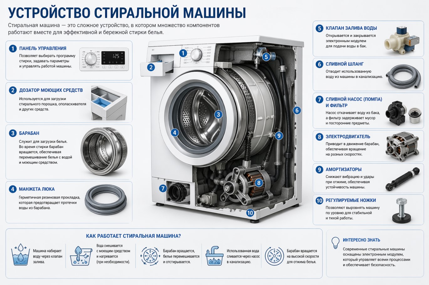 Регулярное обслуживание стиральной машины — залог ее долгой и бесперебойной работы. Простые профилактические меры занимают не более 15-20 минут в месяц, но позволяют избежать дорогостоящего ремонта и продлить срок службы техники на 5-7 лет. Помните: чистая машина — это не только исправная техника, но и гигиена вашего белья и здоровье семьи.