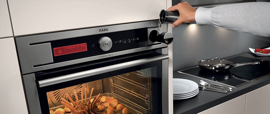 Пользоваться такой духовкой предельно просто — перед использованием функции пара необходимо залить воду либо на дно рабочей камеры, либо в специально предусмотренный для этого контейнер, который зачастую скрывается сбоку от контрольной панели (выдвижная конструкция таких резервуаров позволяет произвести долив без остановки приготовления), а затем дождаться ее закипания.