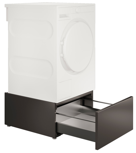 Напольный ящик для хранения моющих средств и других аксессуаров для стирки и сушки одежды в цвете титан.