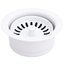 Белая металлическая горловина устанавливается на сливное отверстие мойки и позволяет объединить дополнительные приборы — измельчитель — с сантехникой также и по дизайну.