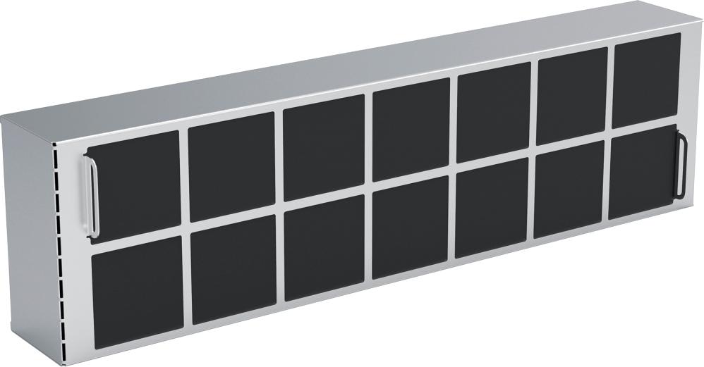 Многоразовый новейший и очень высокопроизводительный угольный фильтр Franke эффективно абсорбирует запахи и имеет возможность регенерации в духовке при температуре около 200 °С, можно подвергать регенерации каждые 3–4 месяца (или чаще в случае интенсивного использования вытяжки). Подходит к вытяжке, интегрированной в варочную поверхность.