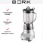 Блендер BORK B501 — стильный и удобный стационарный прибор мощностью 1000 Вт. Вместительная чаша с удобной ручкой и мерными отметками из безопасного полимера ТРИТАН имеет объем 1,6 литра. Мыть ее можно даже в посудомоечной машине. На основании серебристого цвета расположены кнопочные механические переключатели, позволяющие выбрать один из шести режимов работы. Режим MIХ служит для перемешивания, CHOP — для измельчения, BLEND — для взбивания, LIQUIFY — для получения жидких смесей. Импульсный режим PULSE включается на короткое время и позволяет обработать самые твердые продукты — например, орехи, — на самой высокой скорости. Специальный автоматический режим SMOOTHIE служит для приготовления смузи и обработки замороженных продуктов. Его можно использовать также для самоочистки блендера с теплой водой и моющим средством.