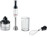 Погружной блендер Bosch позволяет готовить смузи, коктейли, смешивать соусы и заправки и многое другое. Такая конструкция требует вашего участия — нужно держать рукоятку с насадкой и контролировать направление движения. Плюс в том, что можно использовать ее прямо в кастрюле, когда готовите, например, суп-пюре. Корпус сделан в основном из пластика, что уменьшает вес прибора. Он может как влиться в общую гамму интерьера, так и стать ярким акцентом; доминирующий цвет — белый.