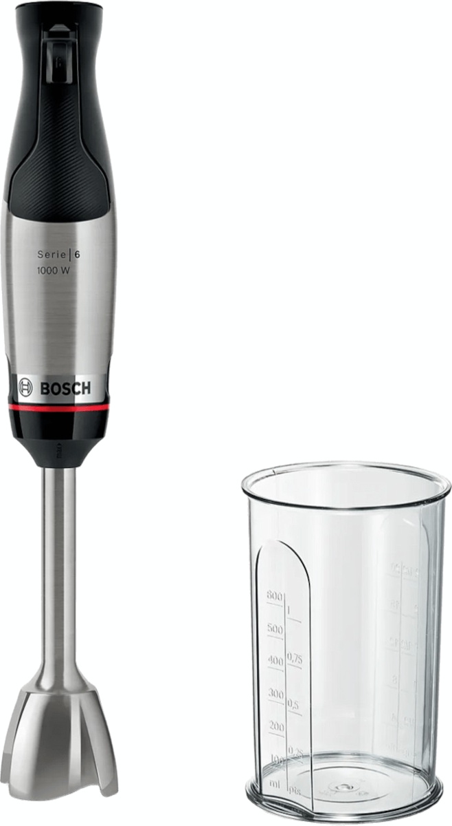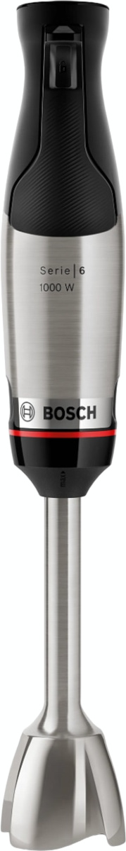 Блендер Bosch MSM6M610 черный — мощный и лаконичный погружной прибор, созданный для тех, кто ценит простоту, надёжность и высокую эффективность в кулинарных процессах. С энергопотреблением 1000 ватт он уверенно справляется с широким спектром задач: измельчает овощи и фрукты, перерабатывает замороженные ягоды, взбивает коктейли, готовит густые соусы, крем-супы и даже рубит мясо для фарша. Такая производительность обеспечивает быструю и равномерную обработку ингредиентов без остатка, сохраняя при этом их структуру и питательные свойства.
