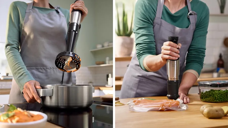 Блендер Bosch MSM6M8X1 черный — мощный и лаконичный погружной прибор, созданный для быстрого и эффективного измельчения, взбивания и перемешивания продуктов прямо в посуде. Матовый чёрный корпус придаёт устройству современный и солидный вид, подчёркивая его принадлежность к технике премиального уровня. Несмотря на наличие всего одной скорости, высокая мощность в 1200 Вт обеспечивает мгновенный результат: плотные овощи, замороженные ягоды, орехи и даже кусочки льда превращаются в однородную массу за считанные секунды.