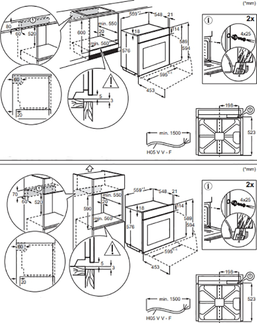 Ко всем моделям прилагаются подробные инструкции по установке, где указаны точные размеры ниши для каждой конкретной духовки.