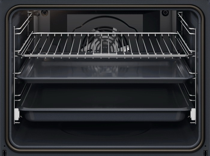 Этот трубчатый нагреватель проходит по периметру задней стенки. Внутри образованного им контура за специальной перфорированной стенкой находится мощный вентилятор. Когда воздух нагревается, вентилятор равномерно распределяет его по всему пространству камеры, так что во всех ее участках поддерживается одинаковая температура. Поскольку используется задний нагрев, потоки воздуха проникают между уровнями приготовления, что позволяет размещать в камере сразу несколько блюд без смешивания запахов, чтобы сэкономить время и снизить расход электроэнергии. При приготовлении в этом режиме блюдо не подгорит ни сверху, ни снизу, а воздействие горячего воздуха гарантирует получение румяной корочки.
