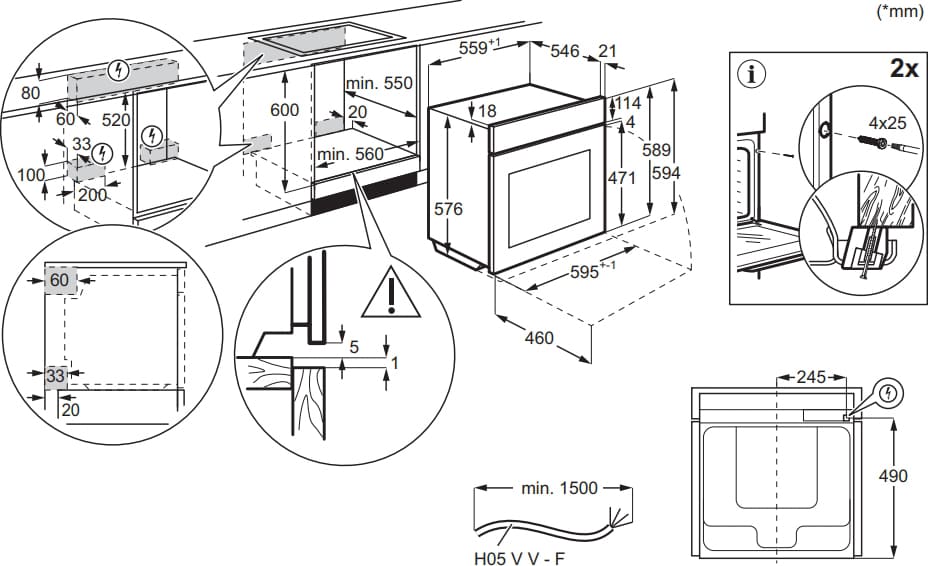 Ко всем моделям прилагаются подробные инструкции по установке, где указаны точные размеры ниши для каждой конкретной духовки.