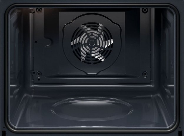 Этот трубчатый нагреватель проходит по периметру задней стенки. Внутри образованного им контура за специальной перфорированной стенкой находится мощный вентилятор. Когда воздух нагревается, вентилятор равномерно распределяет его по всему пространству камеры, так что во всех ее участках поддерживается одинаковая температура. Поскольку используется задний нагрев, потоки воздуха проникают между уровнями приготовления, что позволяет размещать в камере сразу несколько блюд без смешивания запахов, чтобы сэкономить время и снизить расход электроэнергии. При приготовлении в этом режиме блюдо не подгорит ни сверху, ни снизу, а воздействие горячего воздуха гарантирует получение румяной корочки.