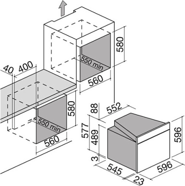 Размеры ниши для встраивания духового шкафа определяются, исходя из габаритов самого устройства. Стандартные модели обычно без труда устанавливаются в нишу шириной около 560 мм, высотой около 595 мм и глубиной примерно 550 мм. Следует помнить, что фасад устройства должен иметь большие размеры, чем величина ниши.