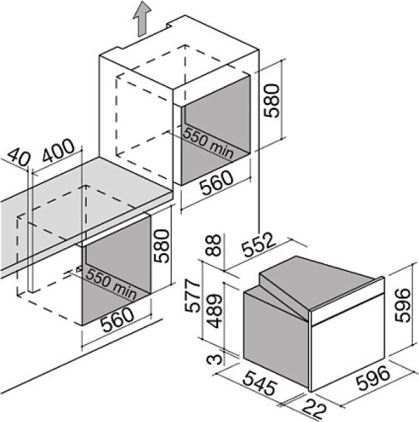 Размеры ниши для встраивания духового шкафа определяются, исходя из габаритов самого устройства. Стандартные модели обычно без труда устанавливаются в нишу шириной около 560 мм, высотой около 595 мм и глубиной примерно 550 мм. Следует помнить, что фасад устройства должен иметь большие размеры, чем величина ниши.