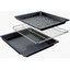 В стандартную комплектацию любого духового шкафа входят один или два противня — эмалированных или с антипригарным покрытием — и решетка. Единственный противень, как правило, имеет низкие бортики и предназначается для приготовления выпечки. Если духовка комплектуется двумя противнями, то второй отличается более высокими бортиками — его можно использовать для запекания мяса, птицы, овощных блюд. На решетке в духовке, не оснащенной грилем, обычно устанавливаются формы для запекания — стальные, керамические или стеклянные. В духовках премиум-класса количество противней может быть увеличено: к стандартному комплекту добавляются противни с перфорацией для мяса, специальные поддоны для сбора выделившегося сока.