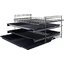 В стандартную комплектацию любого духового шкафа входят один или два противня — эмалированных или с антипригарным покрытием — и решетка. Единственный противень, как правило, имеет низкие бортики и предназначается для приготовления выпечки. Если духовка комплектуется двумя противнями, то второй отличается более высокими бортиками — его можно использовать для запекания мяса, птицы, овощных блюд. На решетке в духовке, не оснащенной грилем, обычно устанавливаются формы для запекания — стальные, керамические или стеклянные. В духовках премиум-класса количество противней может быть увеличено: к стандартному комплекту добавляются противни с перфорацией для мяса, специальные поддоны для сбора выделившегося сока.