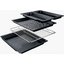 В стандартную комплектацию любого духового шкафа входят один или два противня — эмалированных или с антипригарным покрытием — и решетка. Единственный противень, как правило, имеет низкие бортики и предназначается для приготовления выпечки. Если духовка комплектуется двумя противнями, то второй отличается более высокими бортиками — его можно использовать для запекания мяса, птицы, овощных блюд. На решетке в духовке, не оснащенной грилем, обычно устанавливаются формы для запекания — стальные, керамические или стеклянные. В духовках премиум-класса количество противней может быть увеличено: к стандартному комплекту добавляются противни с перфорацией для мяса, специальные поддоны для сбора выделившегося сока.