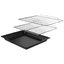 В стандартную комплектацию любого духового шкафа входят один или два противня — эмалированных или с антипригарным покрытием — и решетка. Единственный противень, как правило, имеет низкие бортики и предназначается для приготовления выпечки. Если духовка комплектуется двумя противнями, то второй отличается более высокими бортиками — его можно использовать для запекания мяса, птицы, овощных блюд. На решетке в духовке, не оснащенной грилем, обычно устанавливаются формы для запекания — стальные, керамические или стеклянные. В духовках премиум-класса количество противней может быть увеличено: к стандартному комплекту добавляются противни с перфорацией для мяса, специальные поддоны для сбора выделившегося сока.