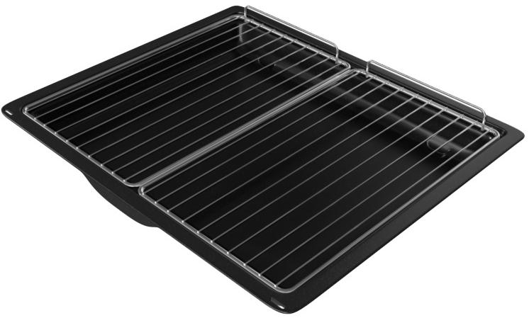 В стандартную комплектацию любого духового шкафа входят один или два противня — эмалированных или с антипригарным покрытием — и решетка. Единственный противень, как правило, имеет низкие бортики и предназначается для приготовления выпечки. Если духовка комплектуется двумя противнями, то второй отличается более высокими бортиками — его можно использовать для запекания мяса, птицы, овощных блюд. На решетке в духовке, не оснащенной грилем, обычно устанавливаются формы для запекания — стальные, керамические или стеклянные. В духовках премиум-класса количество противней может быть увеличено: к стандартному комплекту добавляются противни с перфорацией для мяса, специальные поддоны для сбора выделившегося сока.
