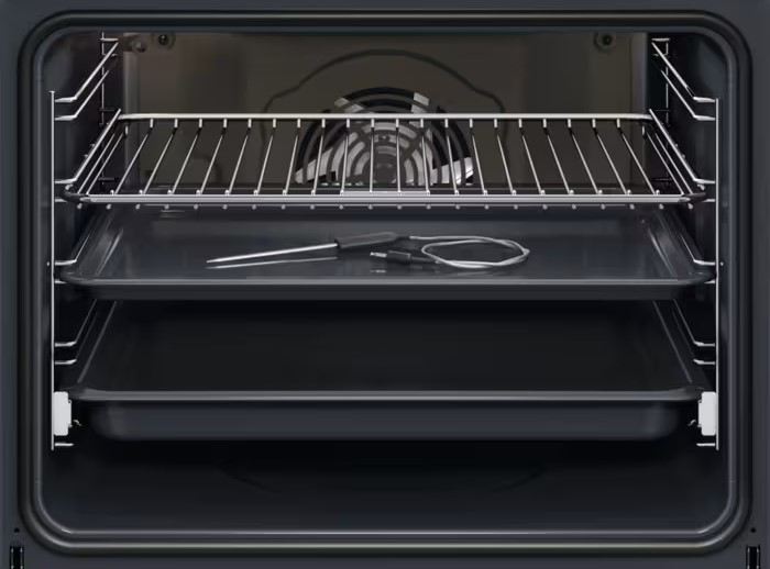 Термощуп в духовых шкафах Electrolux — это электронный термометр, который способен определить температуру внутри готовящихся блюд. Острый конец термощупа с температурным датчиком, температура измеряется непрерывно, а по достижении заданного значения духовка отключается автоматически.