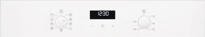 Особенности дизайна и внешней панели управления — также важный пункт при выборе духовки на кухню. В данной модели нужно обратить внимание на цвет — белый,