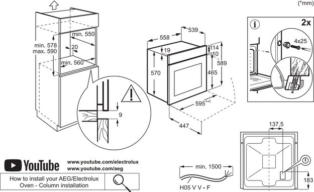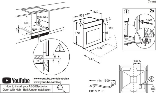 Ко всем моделям прилагаются подробные инструкции по установке, где указаны точные размеры ниши для каждой конкретной духовки.