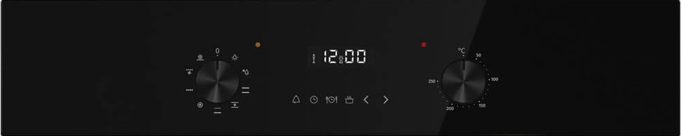 Особенности дизайна и внешней панели управления — также важный пункт при выборе духовки на кухню. В данной модели нужно обратить внимание на цвет — черный, охлаждение двери, чтобы поверхность и мебель вокруг не нагревались.
