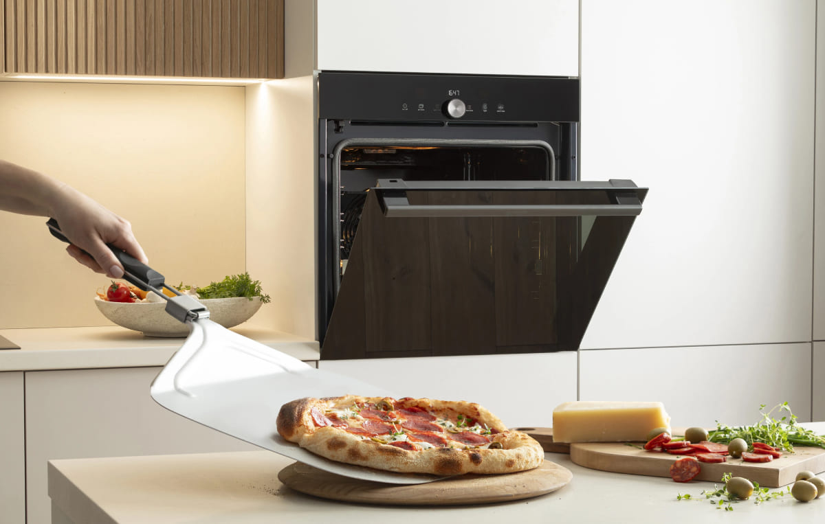 Режим приготовления пиццы позволяет не выставлять эти параметры самостоятельно, а указывать только размер или вес блюда — все настройки будут определены автоматически. Этим режимом оснащены духовки многих известных брендов из Италии, а также из других стран — Smeg, Bertazzoni, Fulgor Milano, Bosch, Electrolux, AEG. На его наличие указывает значок со стилизованным изображением пиццы. В некоторых моделях выпечка пиццы становится еще более удобной благодаря специальному камню — плите из натурального или искусственного гранита, которая способна впитывать влагу, что гарантирует лучшее пропекание и хрустящую корочку.