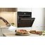 Особенности дизайна и внешней панели управления — также важный пункт при выборе духовки на кухню. В данной модели нужно обратить внимание на цвет — черный,