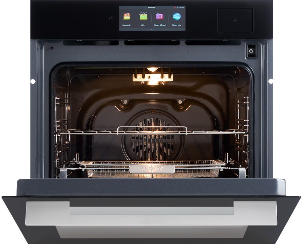 Режимы Аэрогриль / Аэрофритюр в современных встраиваемых духовых шкафах позволяют готовить множество вкусных блюд, не используя масло или жир и сохраняя все полезные качества продуктов. Этими режимами оснащены многие модели таких известных брендов, как итальянский Smeg, скандинавский Electrolux, немецкий Kuppersbusch словенский Gorenje. Приготовление в этих режимах производится за счет циркуляции горячего воздуха одновременно с верхним и нижним нагревом, обычным грилем, а иногда и кольцевым нагревательным элементом.