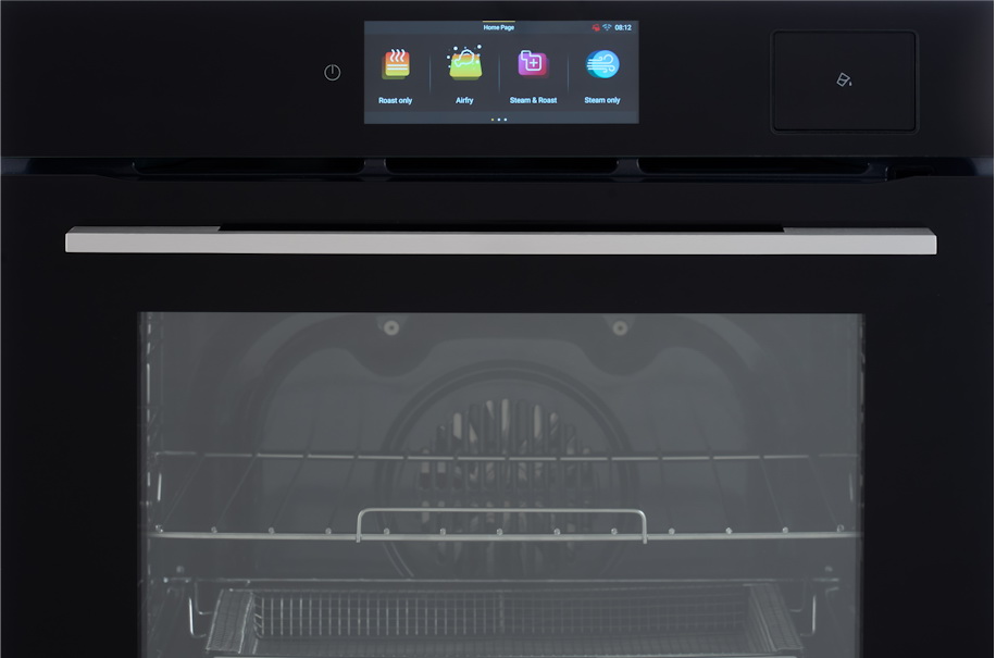 По способу управления можно выделить механические, электронные и сенсорные панели. Дисплеи присутствуют в двух последних вариантах. Электронное управление сочетает дисплей, кнопки и поворотные регуляторы. Сенсорные дисплеи отличаются тем, что все команды в них вводятся прикосновением к той или иной области экрана. Большие многоязычные сенсорные цветные дисплеи с выводом изображений и анимации — принадлежность духовок премиум-класса. Сенсорное управление позволяет работать с интерактивным меню, использовать встроенные книги рецептов, получать подсказки при приготовлении тех или иных продуктов и даже сохранять фотографии любимых блюд.
