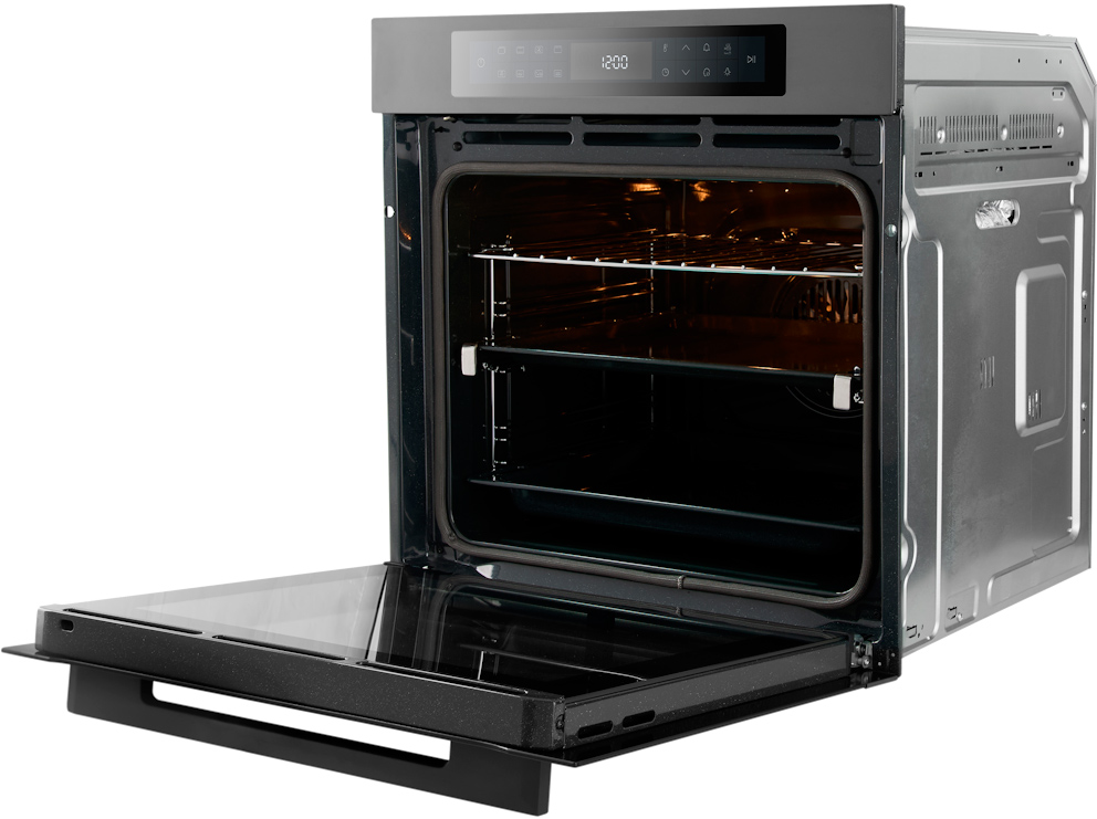 Особенности дизайна и внешней панели управления — также важный пункт при выборе духовки на кухню. В данной модели нужно обратить внимание на цвет — серый,