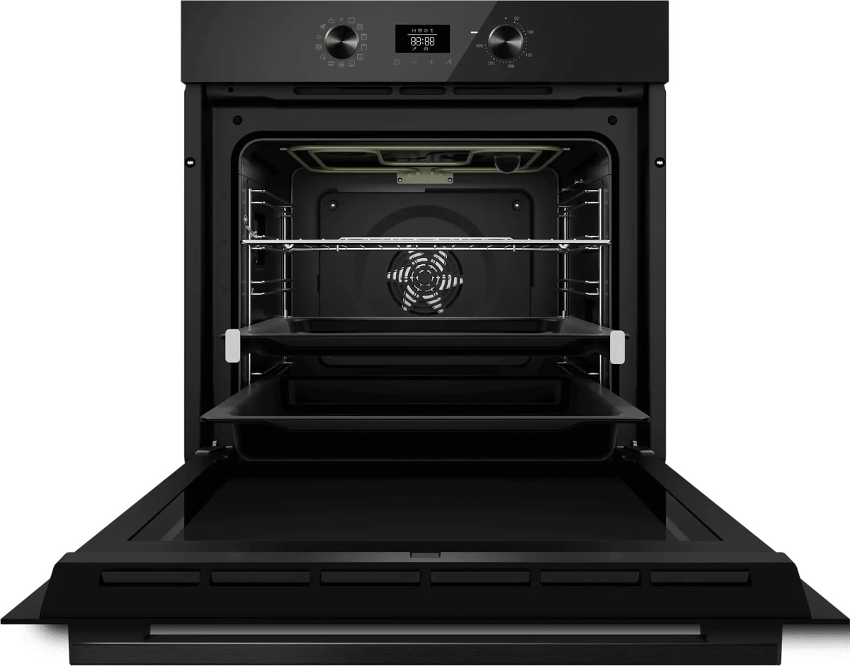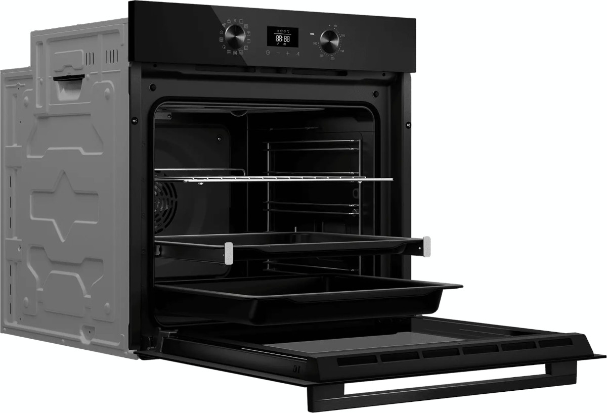 Особенности дизайна и внешней панели управления — также важный пункт при выборе духовки на кухню. В данной модели нужно обратить внимание на цвет — черный,