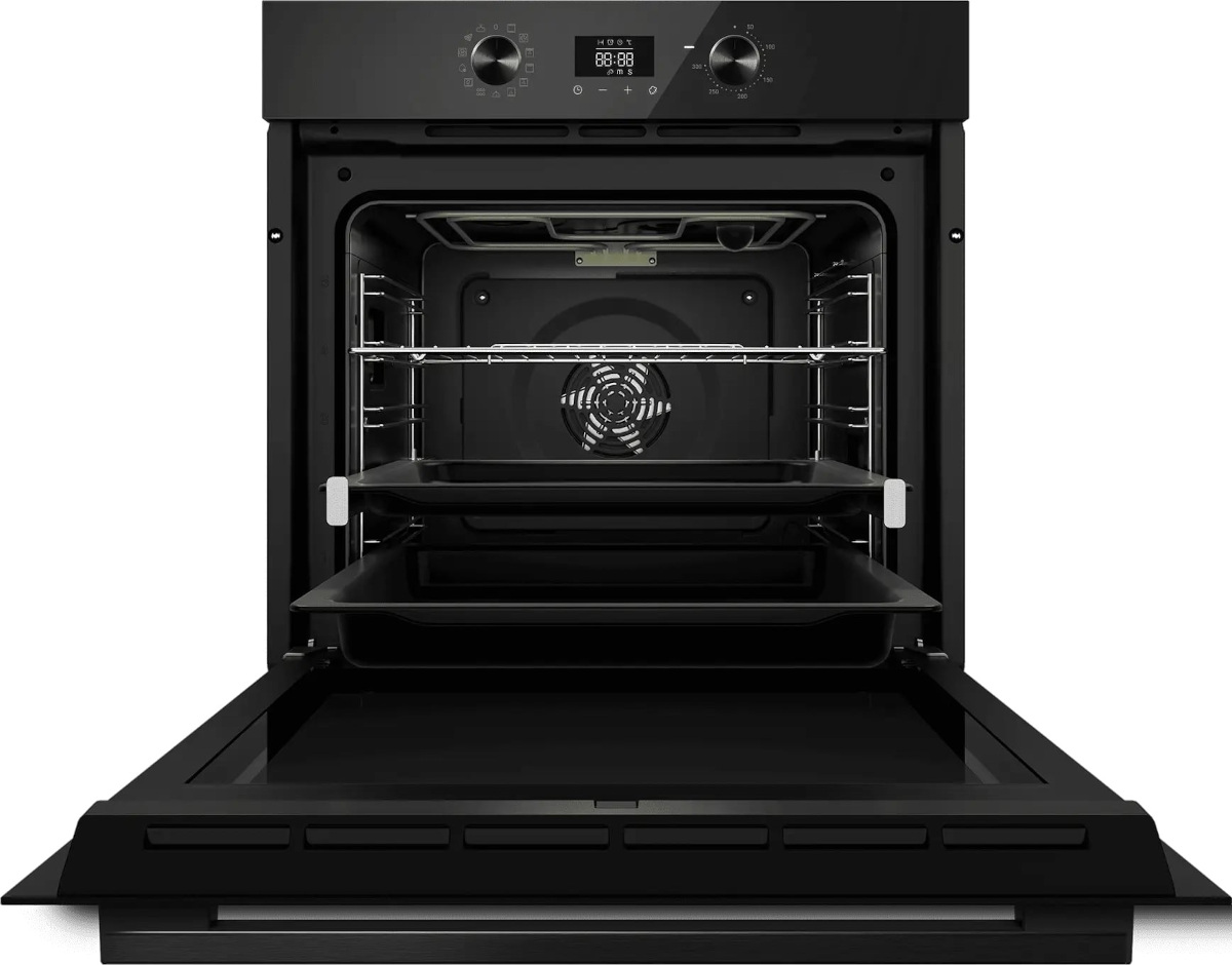 Особенности дизайна и внешней панели управления — также важный пункт при выборе духовки на кухню. В данной модели нужно обратить внимание на цвет — черный,