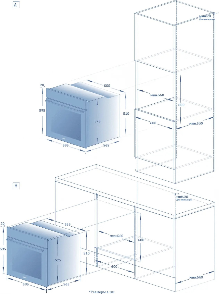 Ко всем моделям прилагаются подробные инструкции по установке, где указаны точные размеры ниши для каждой конкретной духовки.