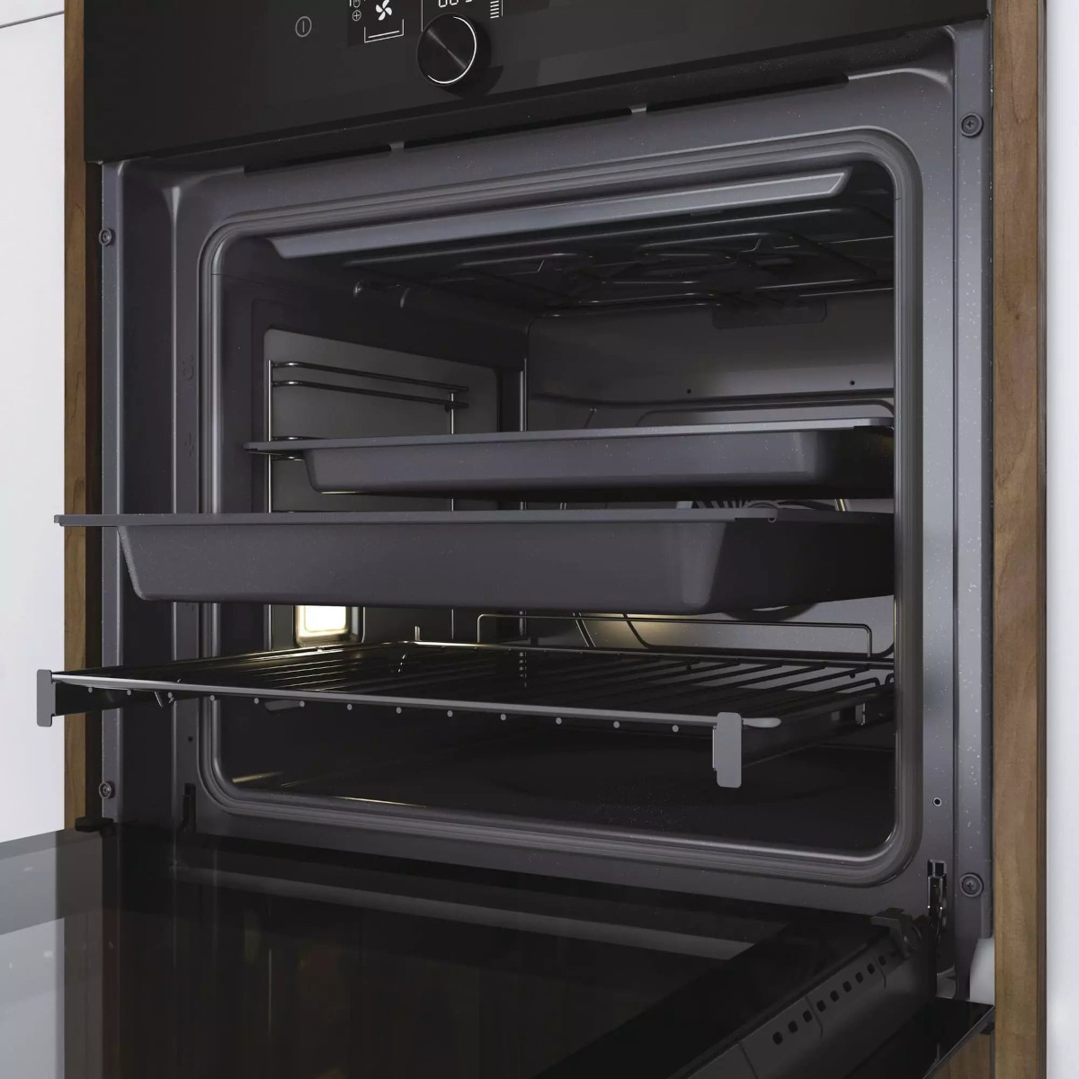 В стандартную комплектацию любого духового шкафа входят один или два противня — эмалированных или с антипригарным покрытием — и решетка. Единственный противень, как правило, имеет низкие бортики и предназначается для приготовления выпечки. Если духовка комплектуется двумя противнями, то второй отличается более высокими бортиками — его можно использовать для запекания мяса, птицы, овощных блюд. На решетке в духовке, не оснащенной грилем, обычно устанавливаются формы для запекания — стальные, керамические или стеклянные. В духовках премиум-класса количество противней может быть увеличено: к стандартному комплекту добавляются противни с перфорацией для мяса, специальные поддоны для сбора выделившегося сока.