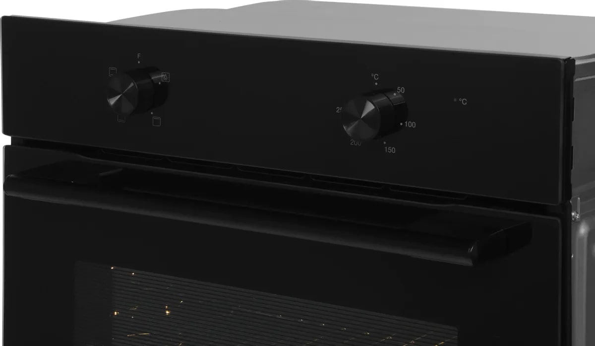 Особенности дизайна и внешней панели управления — также важный пункт при выборе духовки на кухню. В данной модели нужно обратить внимание на цвет — черный, Механическая панель управления позволяет быстро разобраться в настройке программ и не требует чрезмерных усилий.