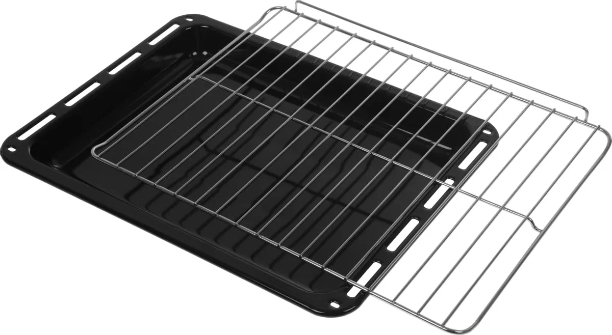 В стандартную комплектацию любого духового шкафа входят один или два противня — эмалированных или с антипригарным покрытием — и решетка. Единственный противень, как правило, имеет низкие бортики и предназначается для приготовления выпечки. Если духовка комплектуется двумя противнями, то второй отличается более высокими бортиками — его можно использовать для запекания мяса, птицы, овощных блюд. На решетке в духовке, не оснащенной грилем, обычно устанавливаются формы для запекания — стальные, керамические или стеклянные. В духовках премиум-класса количество противней может быть увеличено: к стандартному комплекту добавляются противни с перфорацией для мяса, специальные поддоны для сбора выделившегося сока.