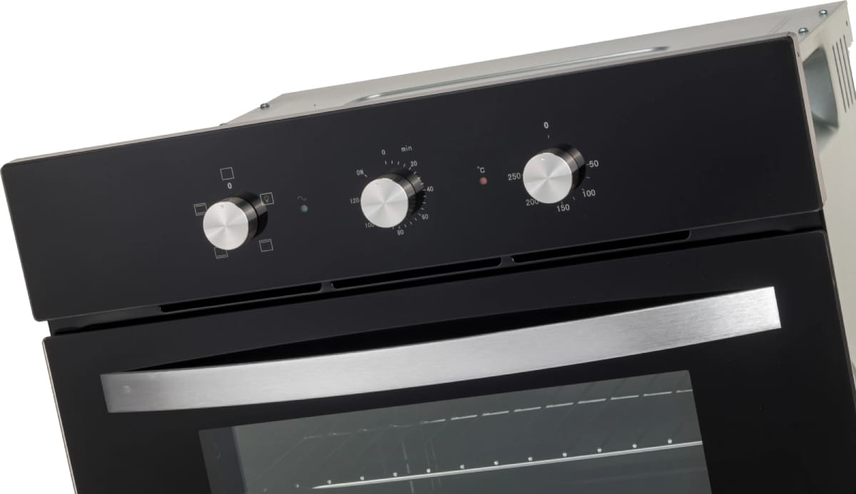 Особенности дизайна и внешней панели управления — также важный пункт при выборе духовки на кухню. В данной модели нужно обратить внимание на цвет — черный, Механическая панель управления позволяет быстро разобраться в настройке программ и не требует чрезмерных усилий.