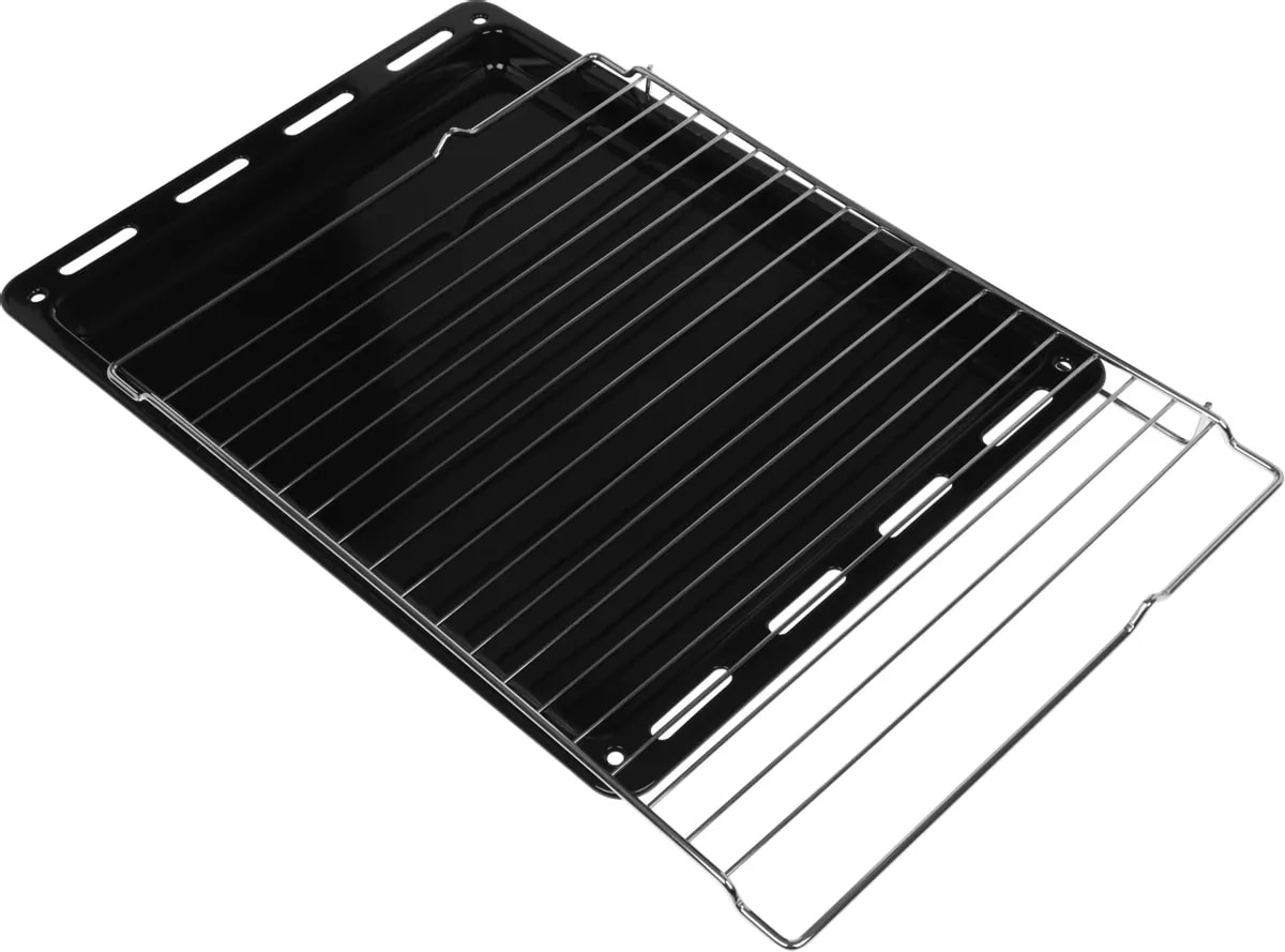 В стандартную комплектацию любого духового шкафа входят один или два противня — эмалированных или с антипригарным покрытием — и решетка. Единственный противень, как правило, имеет низкие бортики и предназначается для приготовления выпечки. Если духовка комплектуется двумя противнями, то второй отличается более высокими бортиками — его можно использовать для запекания мяса, птицы, овощных блюд. На решетке в духовке, не оснащенной грилем, обычно устанавливаются формы для запекания — стальные, керамические или стеклянные. В духовках премиум-класса количество противней может быть увеличено: к стандартному комплекту добавляются противни с перфорацией для мяса, специальные поддоны для сбора выделившегося сока.