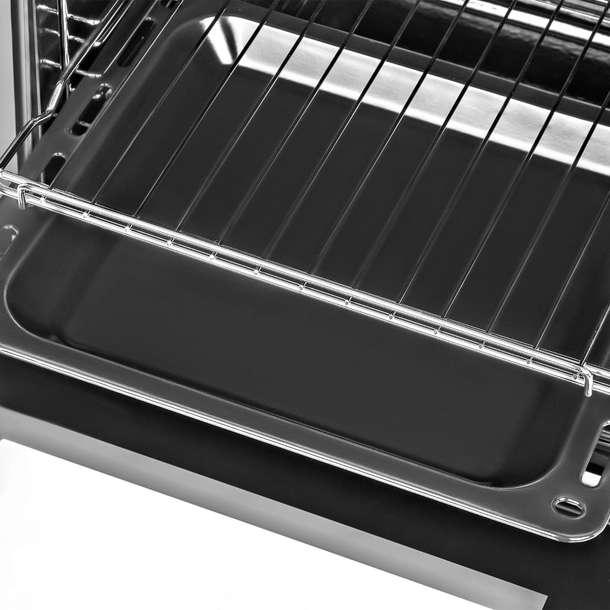 В стандартную комплектацию любого духового шкафа входят один или два противня — эмалированных или с антипригарным покрытием — и решетка. Единственный противень, как правило, имеет низкие бортики и предназначается для приготовления выпечки. Если духовка комплектуется двумя противнями, то второй отличается более высокими бортиками — его можно использовать для запекания мяса, птицы, овощных блюд. На решетке в духовке, не оснащенной грилем, обычно устанавливаются формы для запекания — стальные, керамические или стеклянные. В духовках премиум-класса количество противней может быть увеличено: к стандартному комплекту добавляются противни с перфорацией для мяса, специальные поддоны для сбора выделившегося сока.