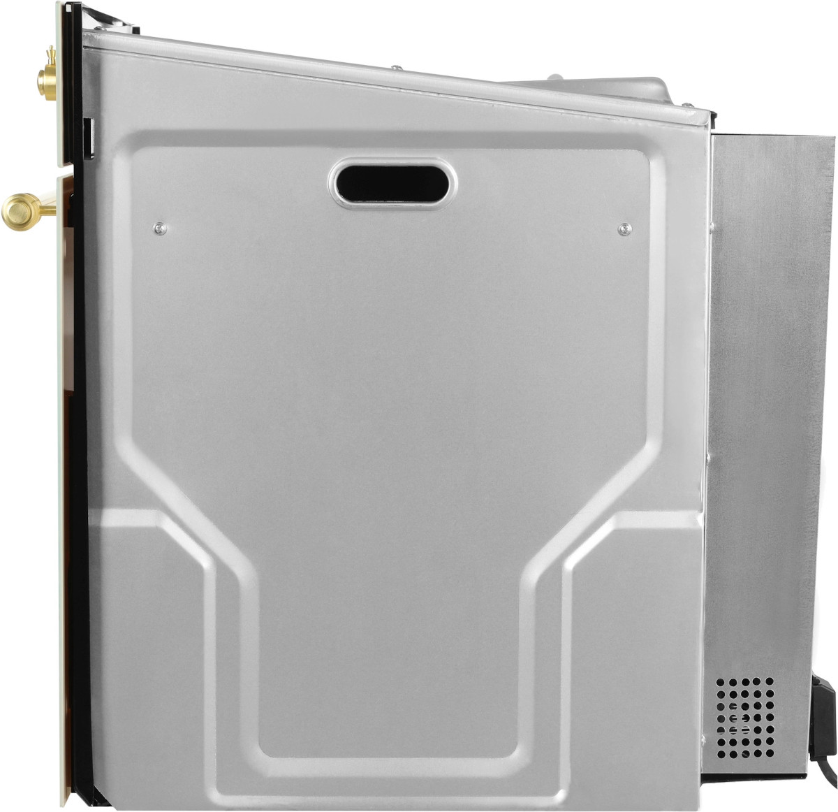 Способ открытия дверцы духовки — немаловажный фактор, который нередко влияет на выбор модели. В современных духовых шкафах используется несколько способов открывания дверцы и, соответственно, их крепления. Самый распространенный и привычный — откидной: петли дверцы располагаются в нижней части духовки, а открытие производится при помощи ручки, закрепленной в верхней части дверцы. Такой вариант используется как в электрических, так и в газовых духовках, встраиваемых и настольных. В ряде моделей ручка отсутствует, а для открывания дверцы достаточно нажать на ее верхнюю часть. Устройства высокой ценовой категории оснащаются также механизмом плавного открывания дверцы: в этом случае за ручку не нужно тянуть, а дверца распахивается самостоятельно. Откидные дверцы часто делают съемными, благодаря этому очистка их значительно упрощается.
