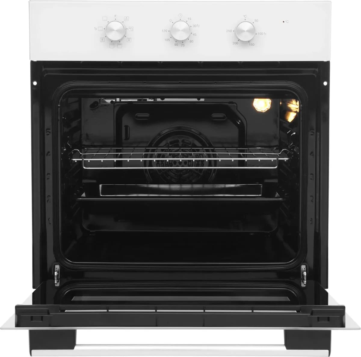 Освещение — опция, которая имеется во всех современных духовых шкафах, как электрических, так и газовых. В некоторых моделях освещение включается, как только запускается процесс приготовления. В другом, более удобном варианте, подсветка автоматически срабатывает только при открытой дверце, однако может быть включена принудительно при нажатии на соответствующую кнопку панели управления.