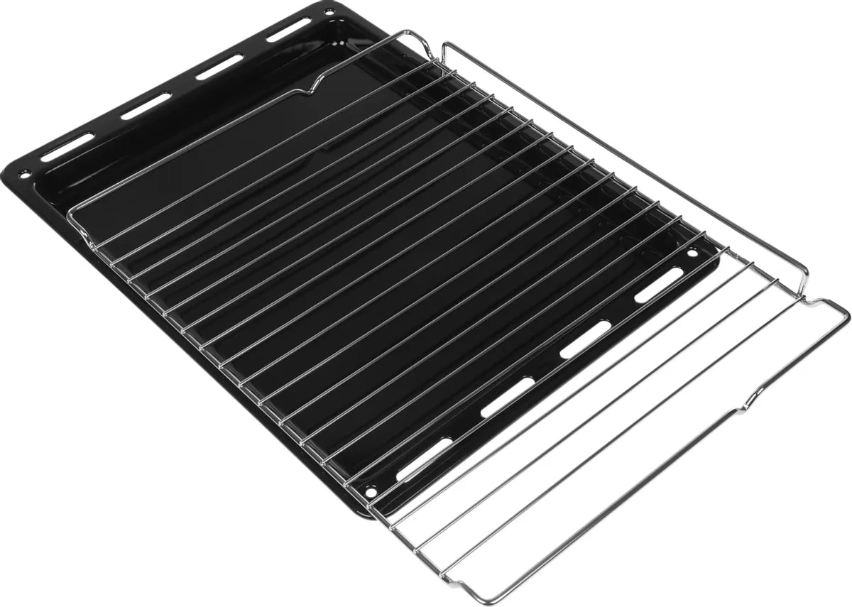В стандартную комплектацию любого духового шкафа входят один или два противня — эмалированных или с антипригарным покрытием — и решетка. Единственный противень, как правило, имеет низкие бортики и предназначается для приготовления выпечки. Если духовка комплектуется двумя противнями, то второй отличается более высокими бортиками — его можно использовать для запекания мяса, птицы, овощных блюд. На решетке в духовке, не оснащенной грилем, обычно устанавливаются формы для запекания — стальные, керамические или стеклянные. В духовках премиум-класса количество противней может быть увеличено: к стандартному комплекту добавляются противни с перфорацией для мяса, специальные поддоны для сбора выделившегося сока.