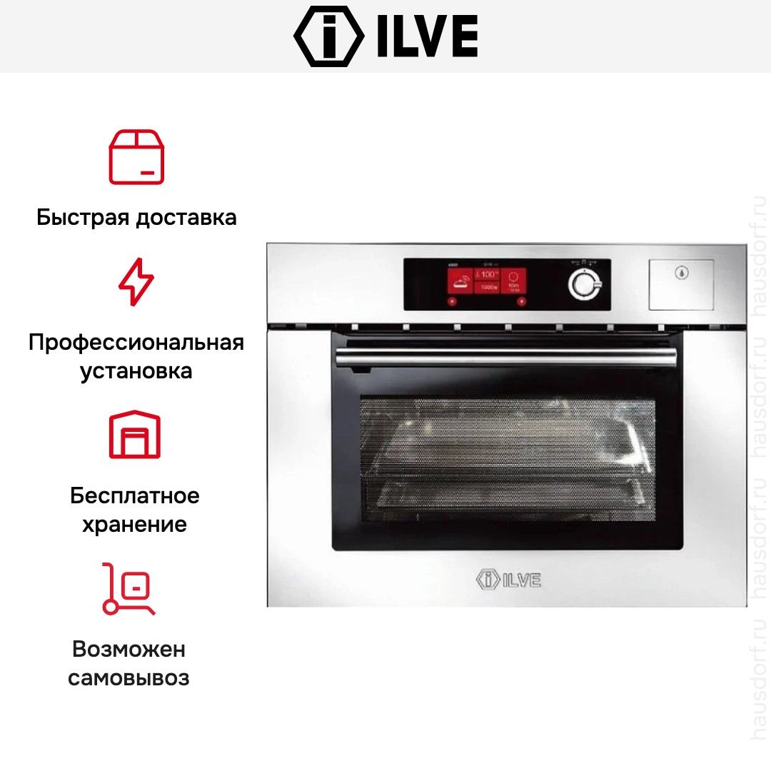 Количество режимов работы в духовом шкафу Илве: 10. В число доступных программ входят: конвекция, приготовление с помощью микроволн, дополнительное использование пара, гриль для создания хрустящей корочки, и другие. Тип гриля в этой модели — электрический.