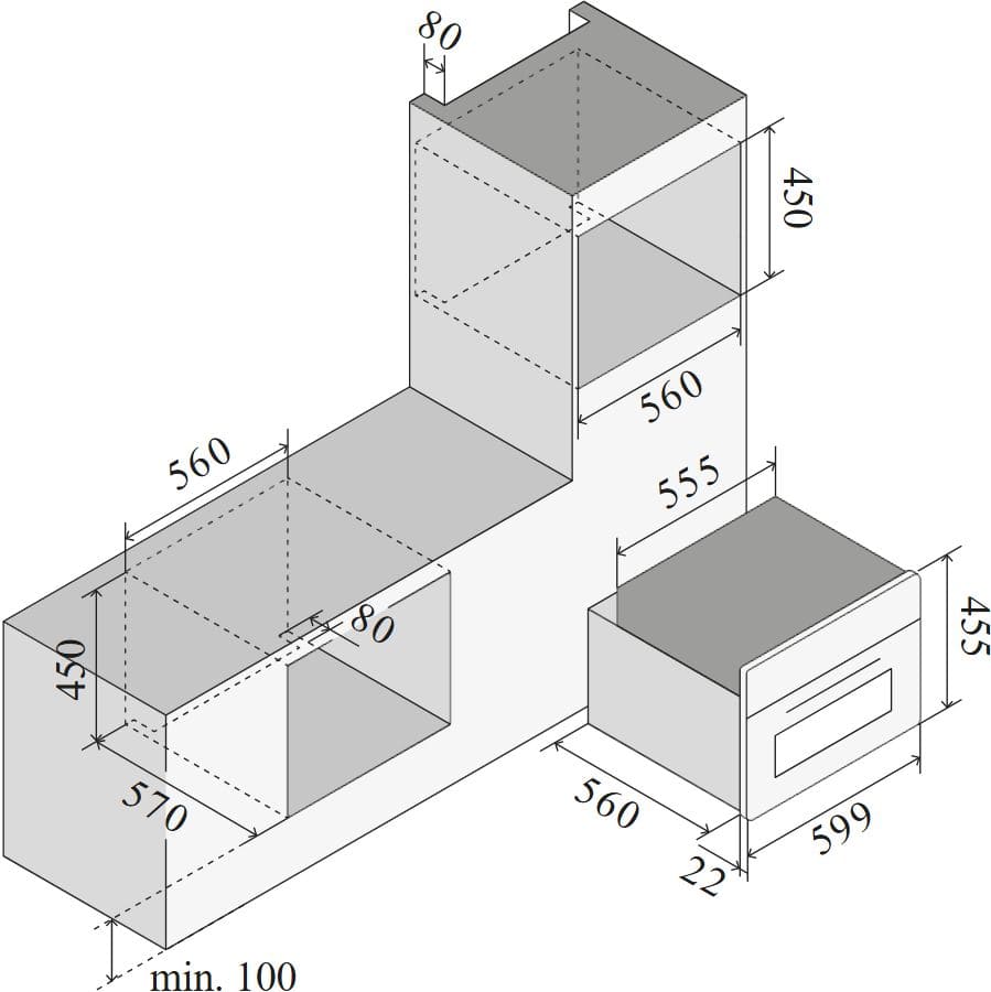 При установке духового шкафа в тумбу необходим также зазор между прибором и полом не менее 8–10 см. Если же она устанавливается в колонну, следует убедиться, что при открывании дверцы в лицо не будет ударять горячий воздух, а панель управления легко доступна. Кроме того, необходимо обеспечить свободный доступ ко всем розеткам и кабелям — они не должны размещаться непосредственно за задней стенкой духового шкафа.