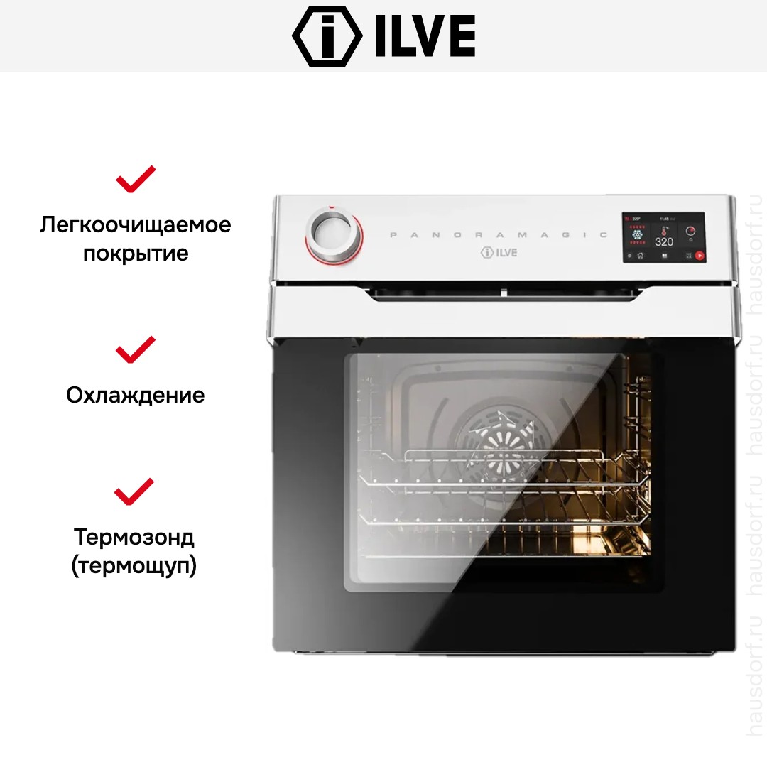 Количество режимов работы в духовом шкафу Илве: 15. В число доступных программ входят: классический нагрев, верхний нагрев, нижний нагрев, гриль для создания хрустящей корочки, пицца, и другие. Помимо основных программ воспользуйтесь специальными возможностями этого прибора: размораживанием продуктов, чтобы сократить время на подготовку; и другими. Тип гриля в этой модели — электрический.
