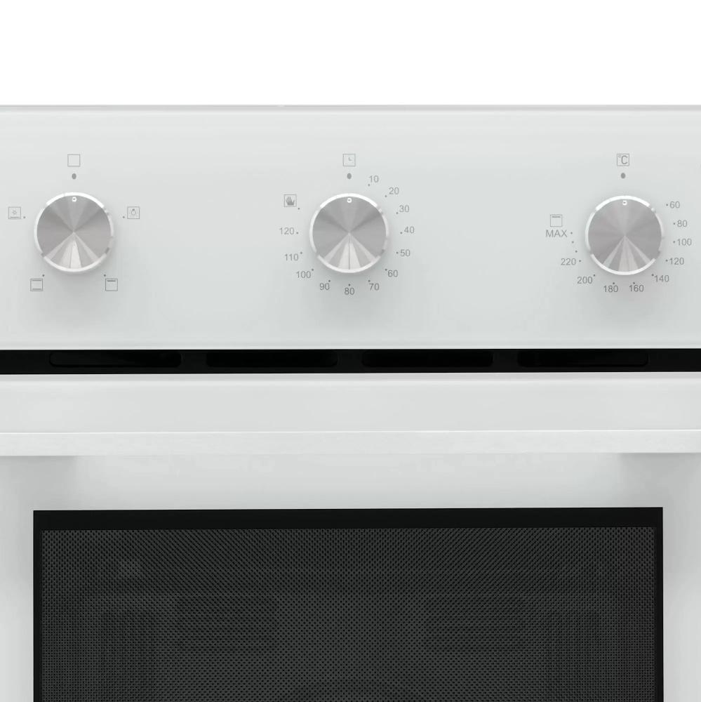 Особенности дизайна и внешней панели управления — также важный пункт при выборе духовки на кухню. В данной модели нужно обратить внимание на цвет — белый, Механическая панель управления позволяет быстро разобраться в настройке программ и не требует чрезмерных усилий.