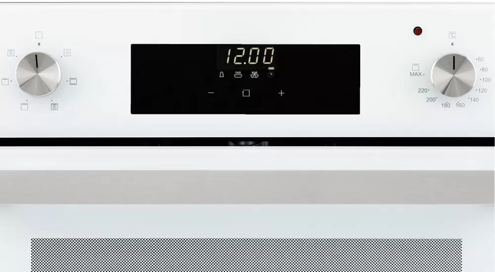 Особенности дизайна и внешней панели управления — также важный пункт при выборе духовки на кухню. В данной модели нужно обратить внимание на цвет — белый, Электронная панель управления позволяет быстро разобраться в настройке программ и не требует чрезмерных усилий.