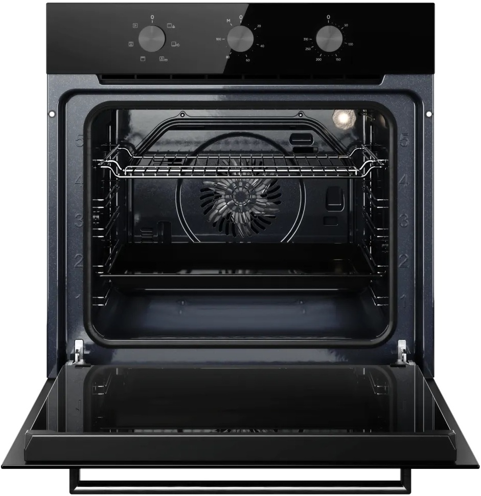 Особенности дизайна и внешней панели управления — также важный пункт при выборе духовки на кухню. В данной модели нужно обратить внимание на цвет — черный, Механическая панель управления позволяет быстро разобраться в настройке программ и не требует чрезмерных усилий.