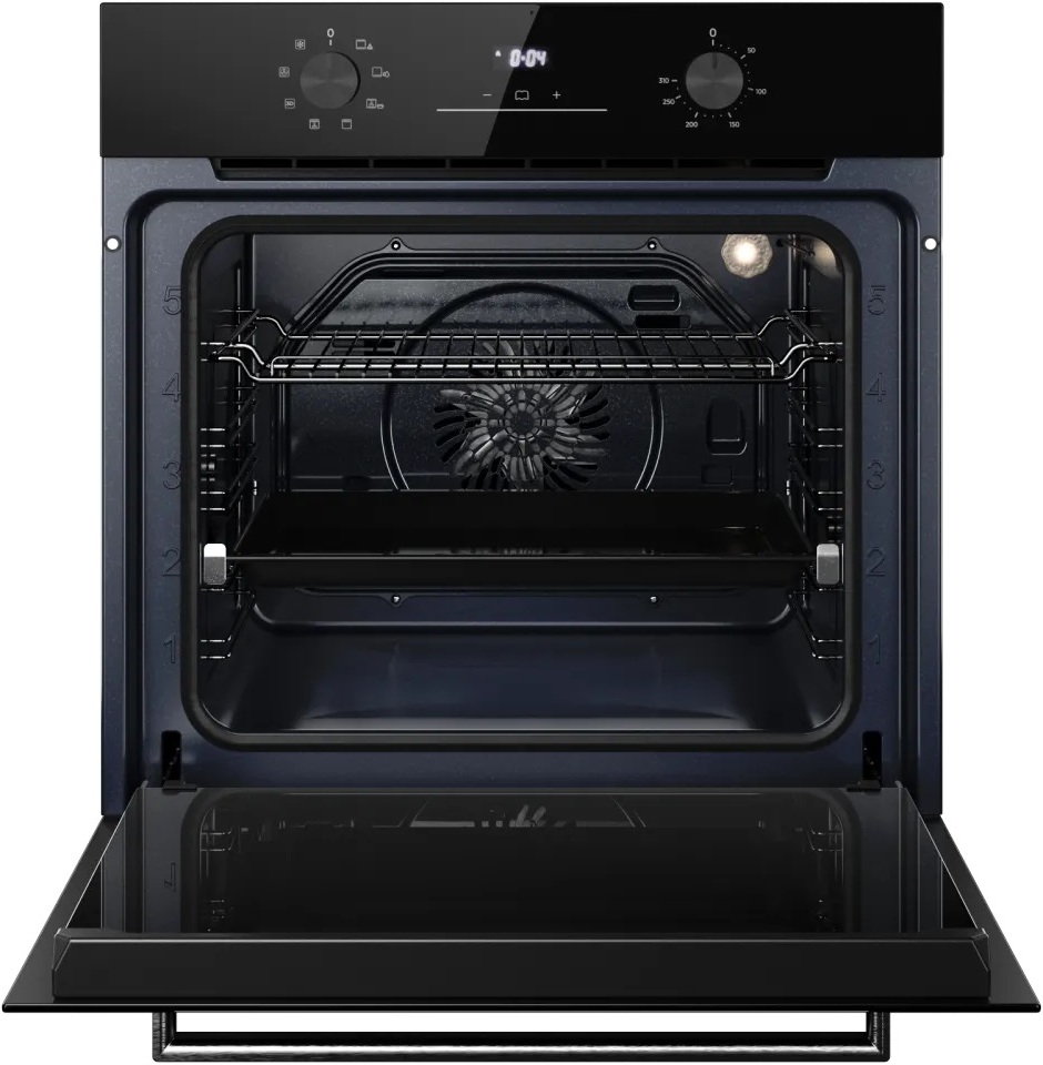 Особенности дизайна и внешней панели управления — также важный пункт при выборе духовки на кухню. В данной модели нужно обратить внимание на цвет — черный,