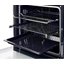 Способ открытия дверцы духовки — немаловажный фактор, который нередко влияет на выбор модели. В современных духовых шкафах используется несколько способов открывания дверцы и, соответственно, их крепления. Самый распространенный и привычный — откидной: петли дверцы располагаются в нижней части духовки, а открытие производится при помощи ручки, закрепленной в верхней части дверцы. Такой вариант используется как в электрических, так и в газовых духовках, встраиваемых и настольных. В ряде моделей ручка отсутствует, а для открывания дверцы достаточно нажать на ее верхнюю часть. Устройства высокой ценовой категории оснащаются также механизмом плавного открывания дверцы: в этом случае за ручку не нужно тянуть, а дверца распахивается самостоятельно. Откидные дверцы часто делают съемными, благодаря этому очистка их значительно упрощается.